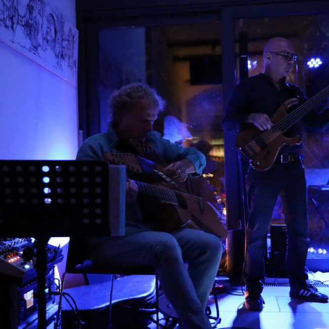 Man konnte spüren, dass Uli Müller-Romeike (Gitarren) und Christoph Niermann (Bass) voll in ihrer Musik aufgehen, wobei der Sonnenuntergang im Hintergrund die Athmosphäre vervollständigte.
