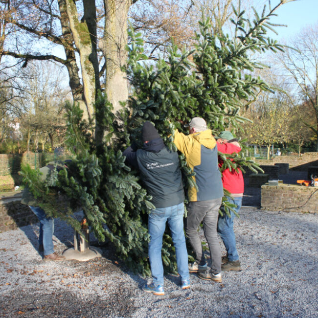 Erst ließ sich kein passender Baum finden, aber es geschah doch ein Weihnachtswunder und der Baum konnte von dem Team der Burgsanierer, mit tatkräftiger Unterstützung von Rainer Nabbefeld aus dem Vorstandsteam, geschlagen und abgeholt werden.
