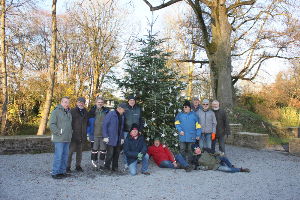 Erst ließ sich kein passender Baum finden, aber es geschah doch ein Weihnachtswunder und der Baum konnte von dem Team der Burgsanierer, mit tatkräftiger Unterstützung von Rainer Nabbefeld aus dem Vorstandsteam, geschlagen und abgeholt werden.