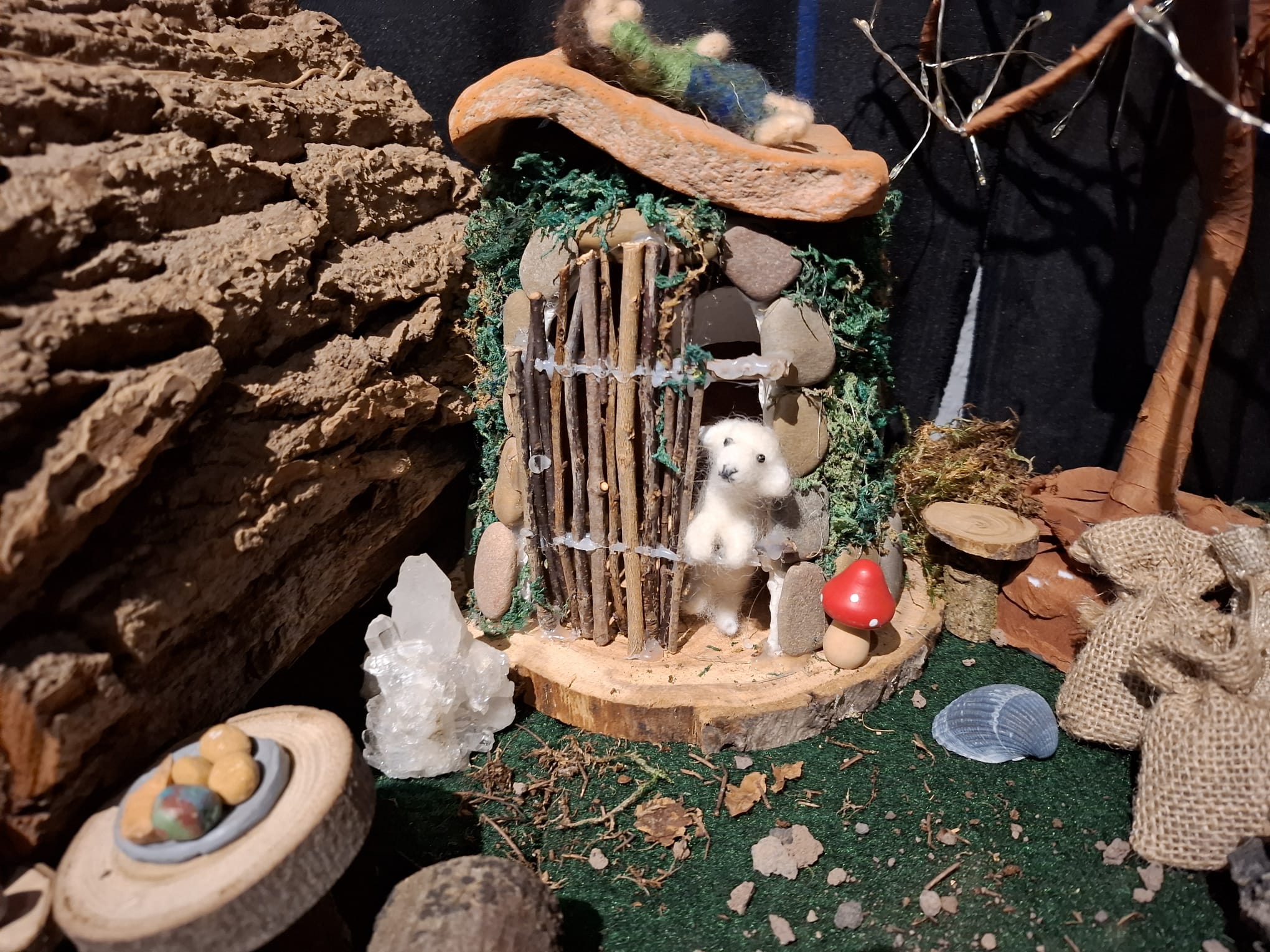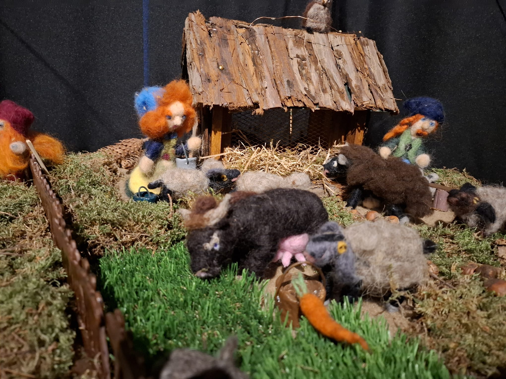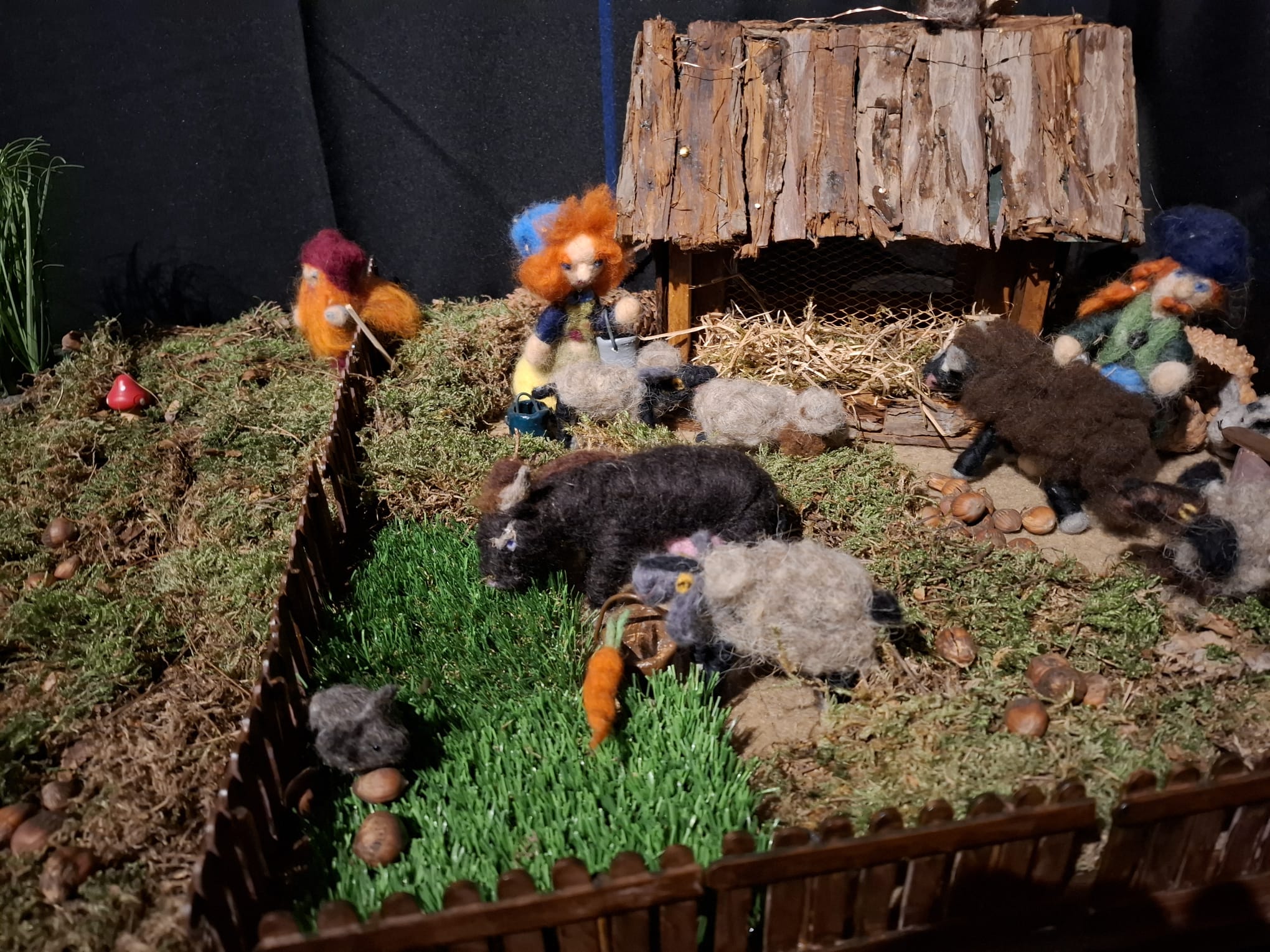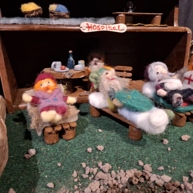 So kam Filomena ins Gespräch mit Ruth und Rainer Nabbefeld, so hießen die beiden Menschen. Diese überlegten nicht lange und boten ihre Hilfe an. Von da an begannen die beiden ein Dorf für die Zwerge zu bauen, in dem diese den Winter verbringen konnten. Das war jede Menge Arbeit, aber die beiden hatten Spaß dabei. Der Ort an dem das Dorf aufgestellt werden konnte war auch schnell gefunden. Die Heimatstuben des Hülser Heimatvereins konnten dafür gut genutzt werden.