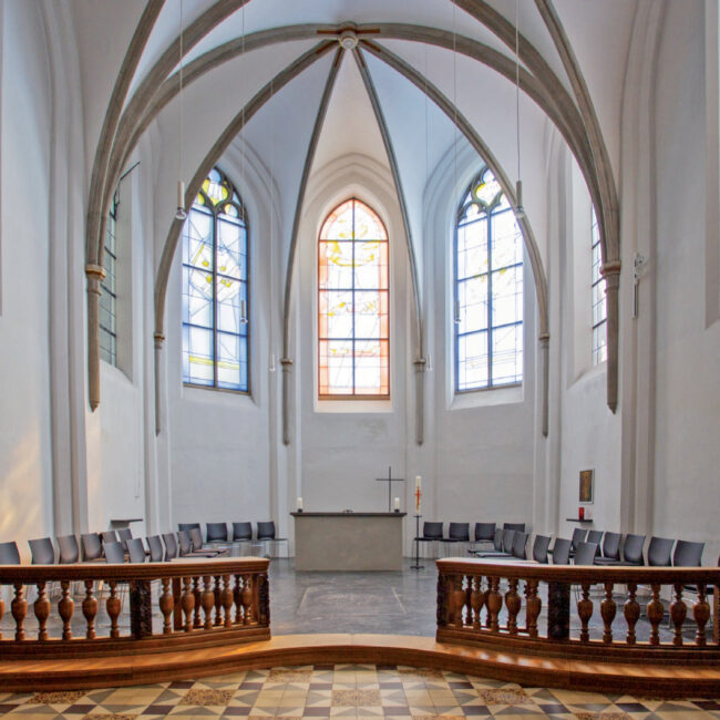 - Schwesternempore. Die Schwesternempore ist in ihrer heutigen Form nach einem Klosterbrand zwischen 1713 und 1737 entstanden. Das Gestühl ist u-förmig in zwei Reihen angeordnet. Die Misericordien (Anlehnstützen) der inneren Reihe sind als Engelsköpfe ausgebildet, auf der äußeren Reihe als portraithafte weibliche Köpfe oder als Allegorien.