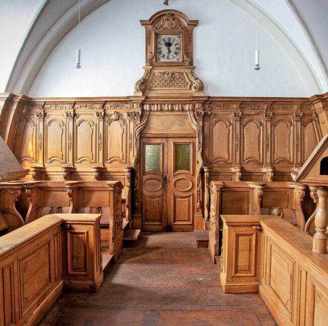 - Schwesterngruft. Unter den schwarzen Fliesen im Mittelgang befand sich früher der Zugang zu dem unter der Empore gelegenen Gewölbe der Schwesterngruft.