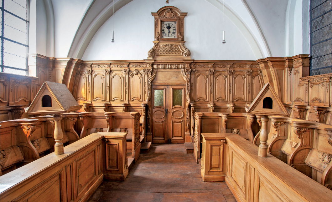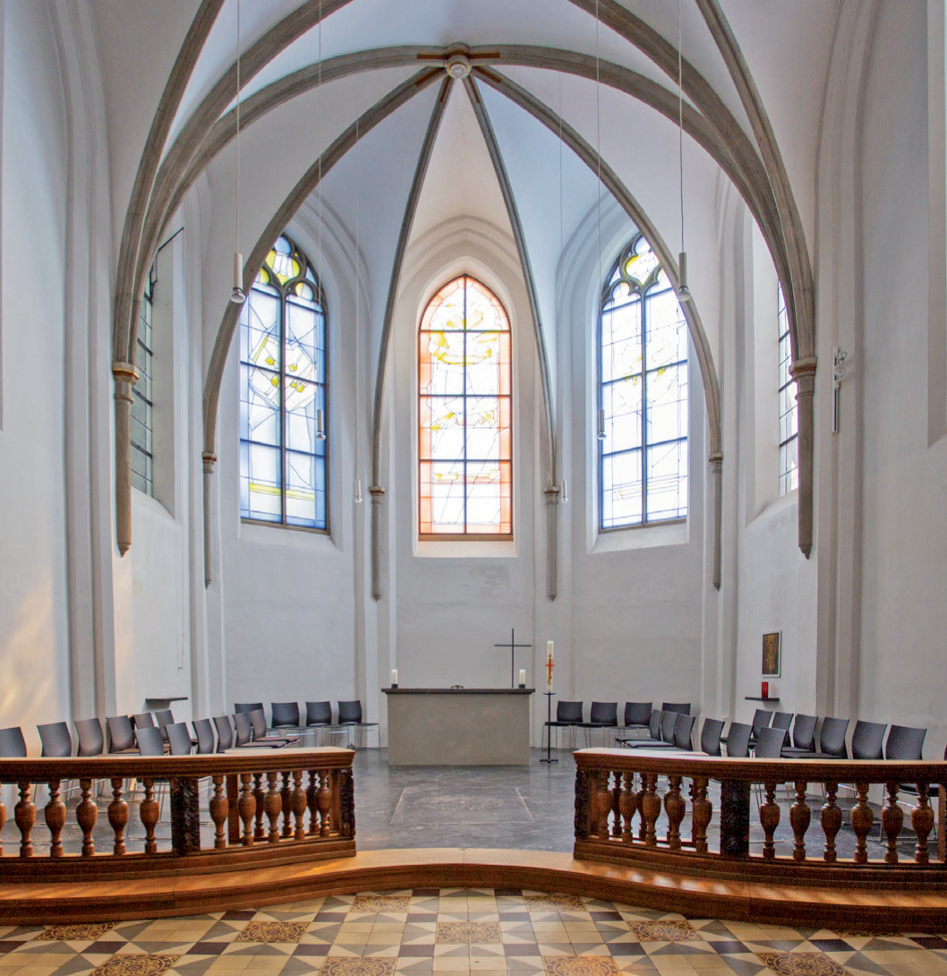- Schwesternempore. Die Schwesternempore ist in ihrer heutigen Form nach einem Klosterbrand zwischen 1713 und 1737 entstanden. Das Gestühl ist u-förmig in zwei Reihen angeordnet. Die Misericordien (Anlehnstützen) der inneren Reihe sind als Engelsköpfe ausgebildet, auf der äußeren Reihe als portraithafte weibliche Köpfe oder als Allegorien.
