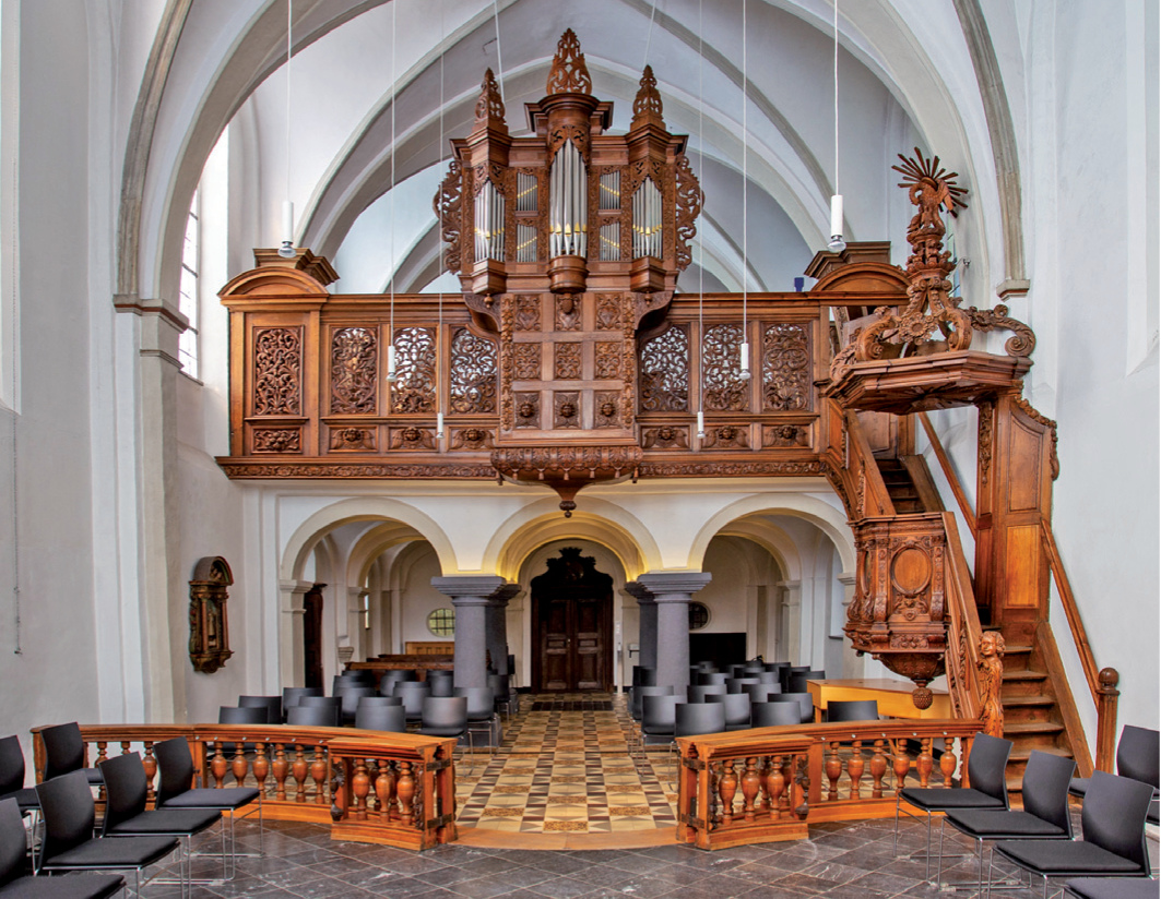 - Orgel. Die kleine Barockorgel stammt aus der Zeit des Wiederaufbaus der Schwesternempore. Sie ist eine Arbeit aus der Werkstatt Weidtmann in Ratingen von 1685 und wurde vermutlich aus einer anderen Kirche übernommen.