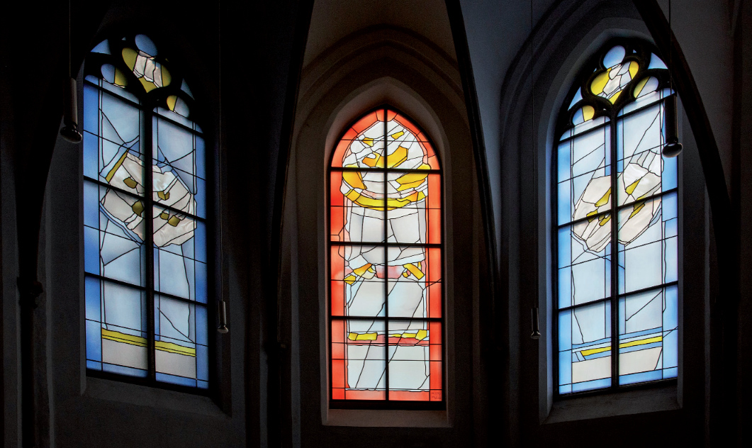 - Adamsbild. Das Glasbild aus der Mitte des 16. Jahrhunderts stammt vermutlich ursprünglich aus einem Kloster in der Eifel und weist auf eine Adelsfamilie Hambach hin. Es war für die moderne Bruder-Konrad-Kapelle auf dem Hülser Berg gestiftet worden und dort bis zur Aufgabe der Kapelle in die Altarwand eingebaut.