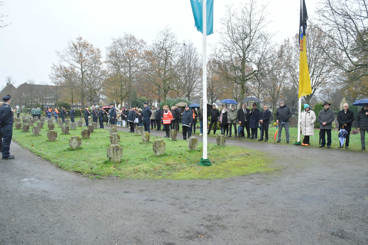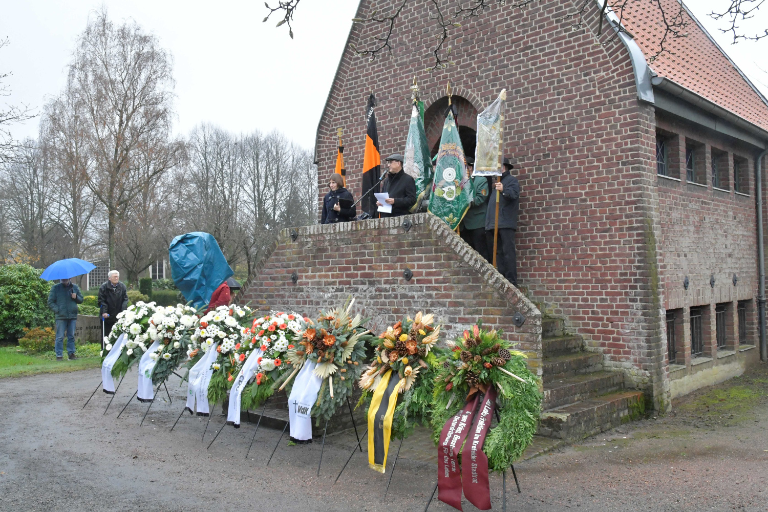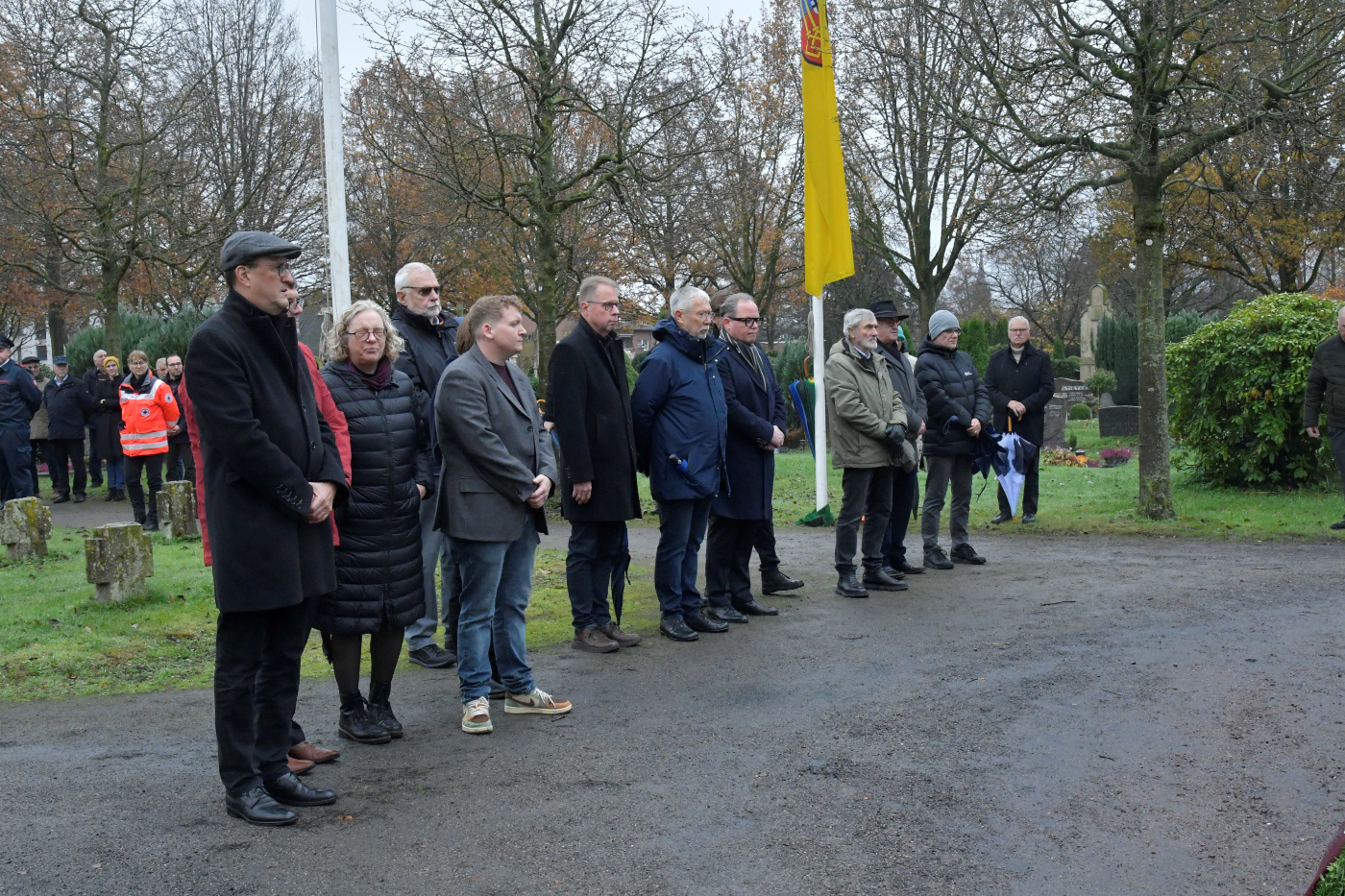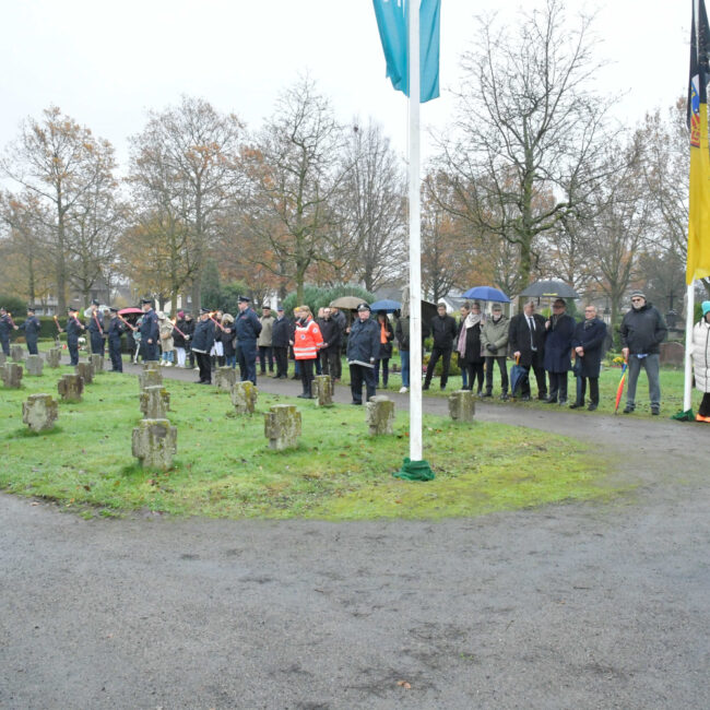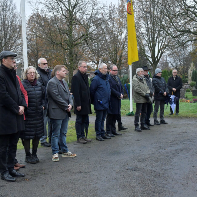 Am Volkstrauertag 2025 versammelten sich zum Gedenken an die Opfer von Gewalt und Krieg, an Kinder, Frauen und Männer aller Völker, Mitglieder der Kirchen, Vereine und Parteien aus Krefeld Hüls auf dem Hülser Friedhof.